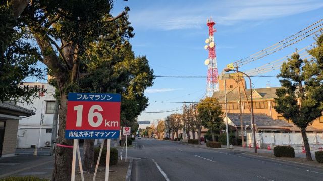 弊社近くの神宮参道は16~17キロ地点です
